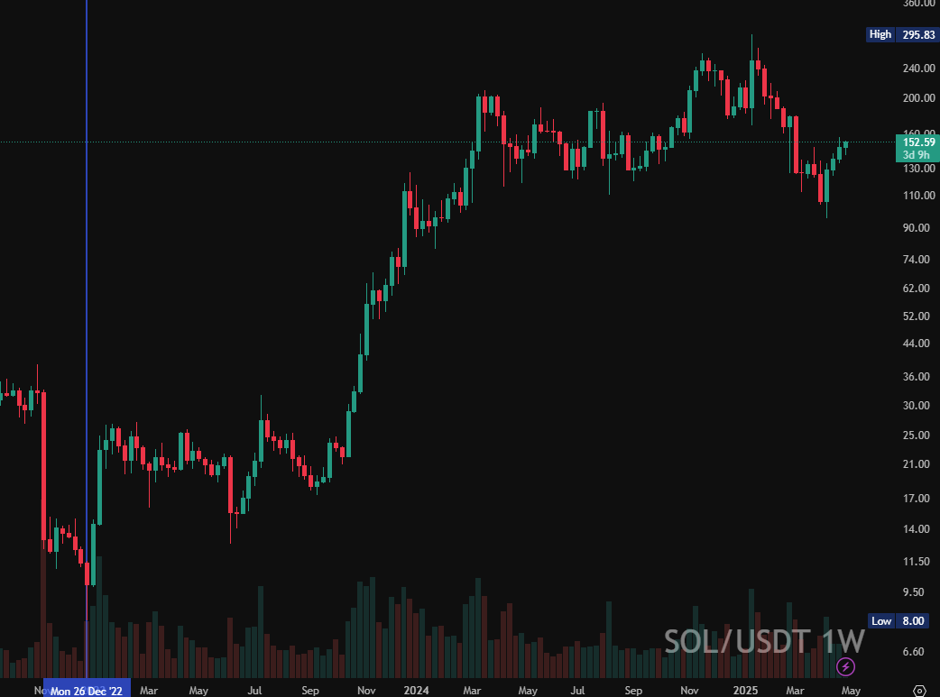 2025 m. gegužės 1 d. duomenimis, „Solana“ kaina buvo 153,23 USD. Dienos aukščiausia kaina siekė 153,84 USD, o žemiausia – 141,52 USD.